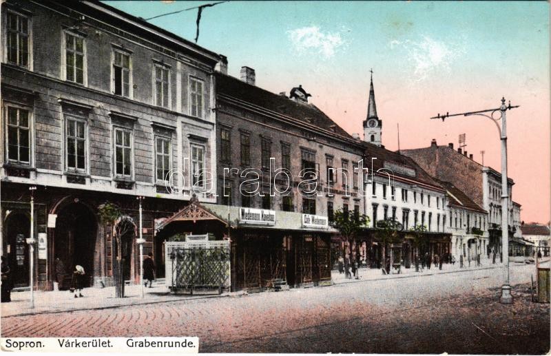 Beschreibung: 1913 Sopron, Várkerület, Wiedemeann kávéház, Romwalter Alfréd könyvnyomdája