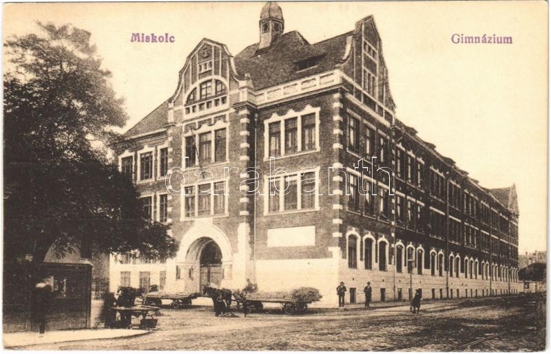 1915 Miskolc, gimnázium. Vasúti levelezőlapárusítás 490. https://www.darabanth.com/de/36-Gross-Auktion/36.1/Ansichtskarten/Ungarn~15417/1915-Miskolc-gimnazium-Vasuti-levelezolaparusitas-490~II2480293
