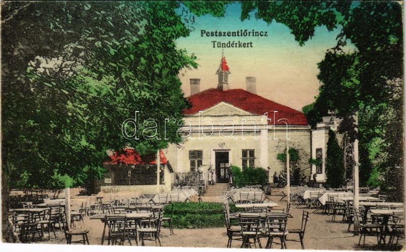 Beschreibung: 1916 Budapest XVIII. Pestszentlőrinc, Pusztaszentlőrinc, Szentlőrinc; Tündérkert vendéglő és kerthelyiség (EK)