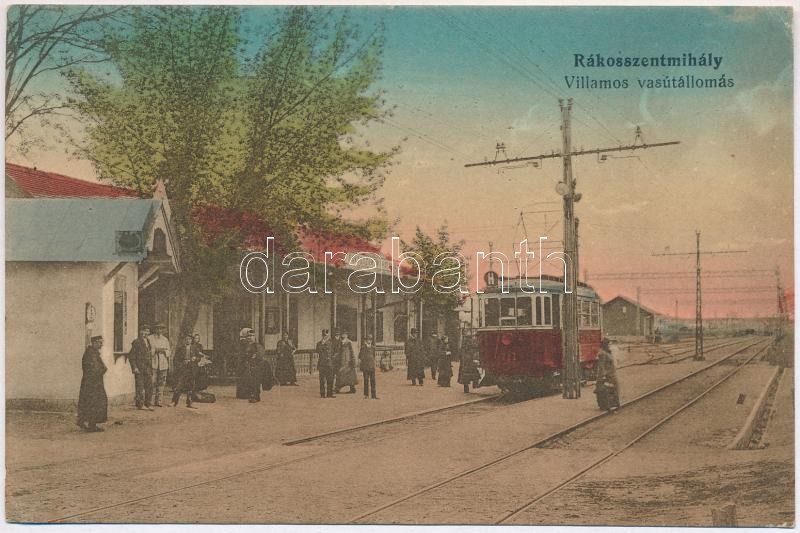 Beschreibung: 1917 Budapest XVI. Rákosszentmihály, HÉV (Helyiérdekű Vasút) állomás, Villamos vasút állomása