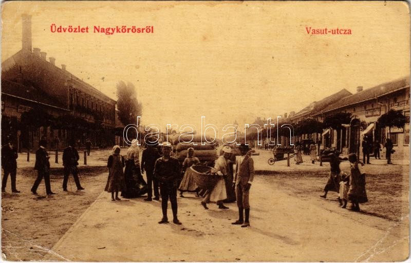 1917 Nagykőrös, Vasút utca, piac árusokkal, üzletek, gyár. W.L. 277. (... https://www.darabanth.com/de/36-Gross-Auktion/36.1/Ansichtskarten/Ungarn~15417/1917-Nagykoros-Vasut-utca-piac-arusokkal-uzletek-gyar-WL-277-Rb~II2483192