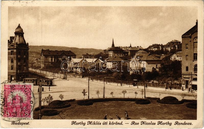1927 Budapest XI. Horthy Miklós úti körönd (ma Bartók Béla út), villam... https://www.darabanth.com/de/36-Gross-Auktion/36.1/Ansichtskarten/Ungarn~15417/1927-Budapest-XI-Horthy-Miklos-uti-korond-ma-Bartok-Bela-ut-villamos-harisnyakoto-uzl~II2481926
