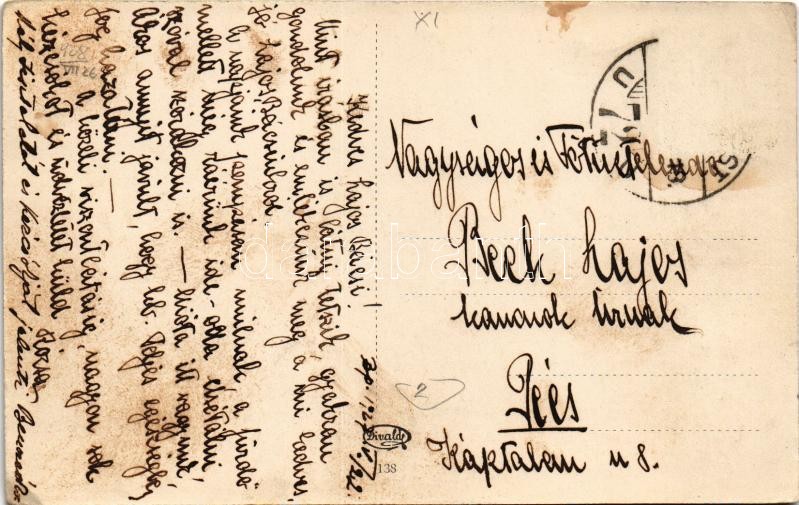 Beschreibung: 1927 Budapest XI. Horthy Miklós úti körönd (ma Bartók Béla út), villamos, harisnyakötő üzlet. TCV card