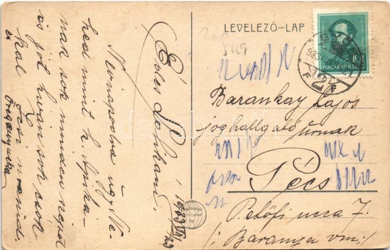 Beschreibung: 1933 Győr, Dunahíd, lovasszekér (felszíni sérülés / surface damage)