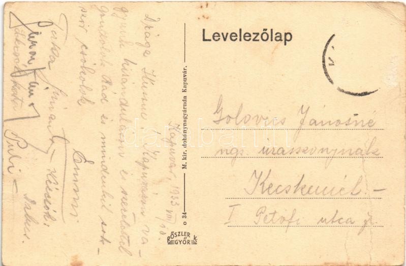 Beschreibung: 1933 Kapuvár, M. kir. postahivatal (fa)