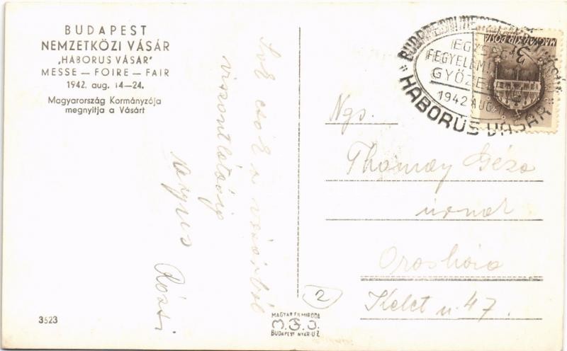 1942 Budapest XIV. Nemzetközi Vásár "Háborús Vásár", Horthy ... https://www.darabanth.com/de/36-Gross-Auktion/36.1/Ansichtskarten/Ungarn~15417/1942-Budapest-XIV-Nemzetkozi-Vasar-Haborus-Vasar-Horthy-Miklos-Magyarorszag-kormanyzo~II2370524
