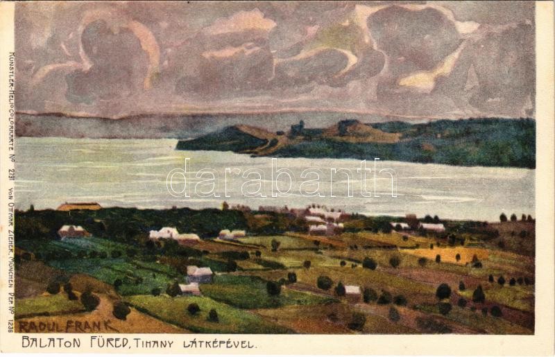 Beschreibung: Balatonfüred, Tihany látképével. Künstler-Heliocolorkarte No. 2791. von Ottmar Zieher, litho s: Raoul Frank