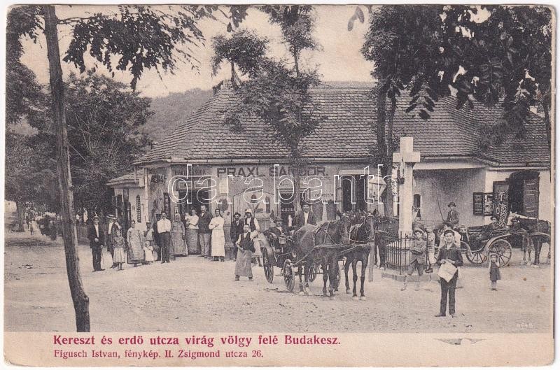 Budakeszi, Kereszt és Erdő utca a Virágvölgy felé, Praxl Sándor fűszer... https://www.darabanth.com/de/36-Gross-Auktion/36.1/Ansichtskarten/Ungarn~15417/Budakeszi-Kereszt-es-Erdo-utca-a-Viragvolgy-fele-Praxl-Sandor-fuszer-es-csemege-kereskede~II2488465