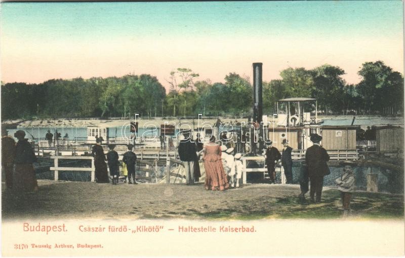Budapest II. Császár fürdő-kikötő a Margitszigettel szemben, gőzhajó é... https://www.darabanth.com/de/36-Gross-Auktion/36.1/Ansichtskarten/Ungarn~15417/Budapest-II-Csaszar-furdo-kikoto-a-Margitszigettel-szemben-gozhajo-erkezo-utasokkal-Tau~II2490896