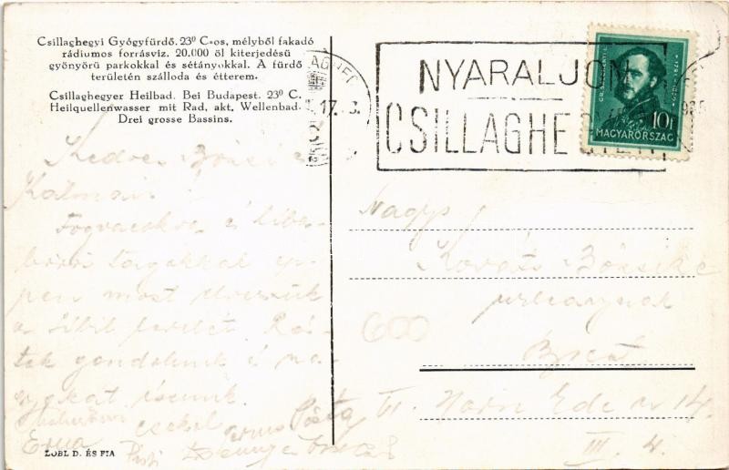 Budapest III. Csillaghegyi gyógyfürdő. reklám (EK) https://www.darabanth.com/de/36-Gross-Auktion/36.1/Ansichtskarten/Ungarn~15417/Budapest-III-Csillaghegyi-gyogyfurdo-reklam-EK~II2488536