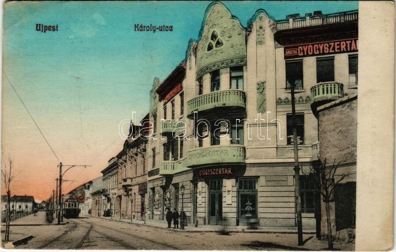 Budapest IV. Újpest, Károly utca, Angyal gyógyszertár, Minta zene isko... https://www.darabanth.com/de/36-Gross-Auktion/36.1/Ansichtskarten/Ungarn~15417/Budapest-IV-Ujpest-Karoly-utca-Angyal-gyogyszertar-Minta-zene-iskola-villamos-Selley-Karo~II2488272