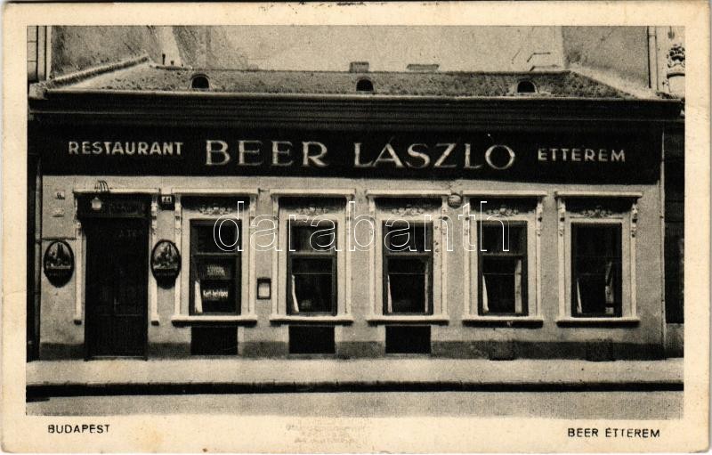 Beschreibung: Budapest VIII. Beer László étterem. Főherczeg Sándor utca 44. (ma Bródy Sándor)