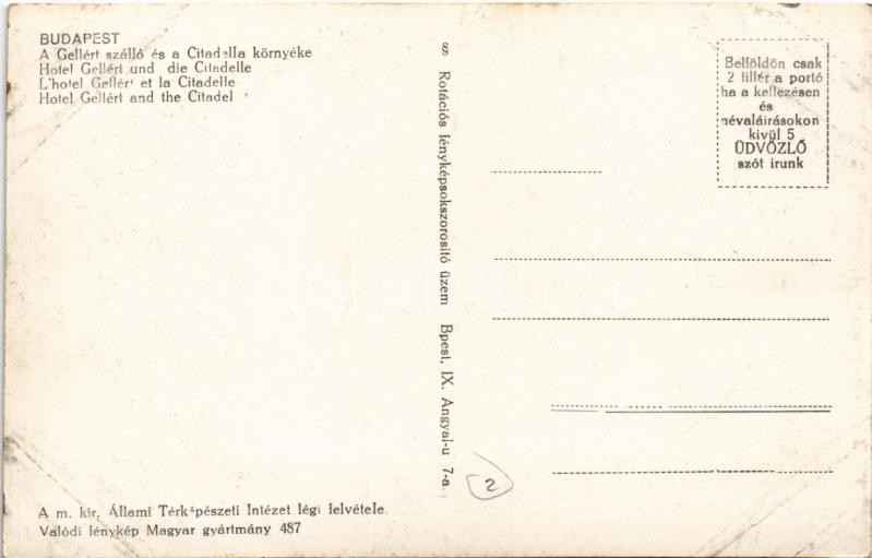 Beschreibung: Budapest XI. Gellért szálló és Citadella környéke. A m. kir. Állami Térképészeti Intézet légi felvétele 487.