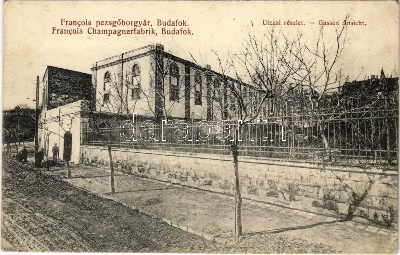 Budapest XXII. Budafok, Francois pezsgőborgyár, utcai részlet https://www.darabanth.com/de/36-Gross-Auktion/36.1/Ansichtskarten/Ungarn~15417/Budapest-XXII-Budafok-Francois-pezsgoborgyar-utcai-reszlet~II2482012
