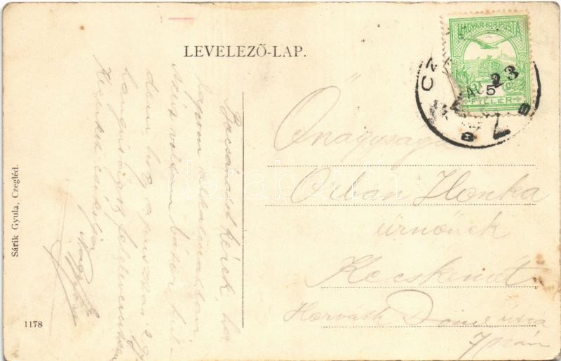 Beschreibung: Cegléd, Református templom. Üdvözlet, montázs a laktanya udvaráról levelet író katonával. Sárik Gyula 1178. (EK)