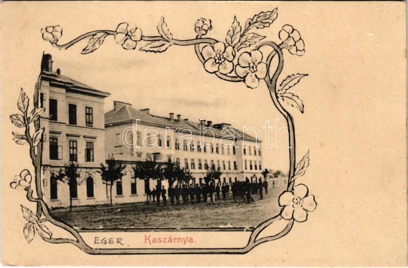 Eger, Kaszárnya. Art Nouveau, floral https://www.darabanth.com/de/36-Gross-Auktion/36.1/Ansichtskarten/Ungarn~15417/Eger-Kaszarnya-Art-Nouveau-floral~II2471083