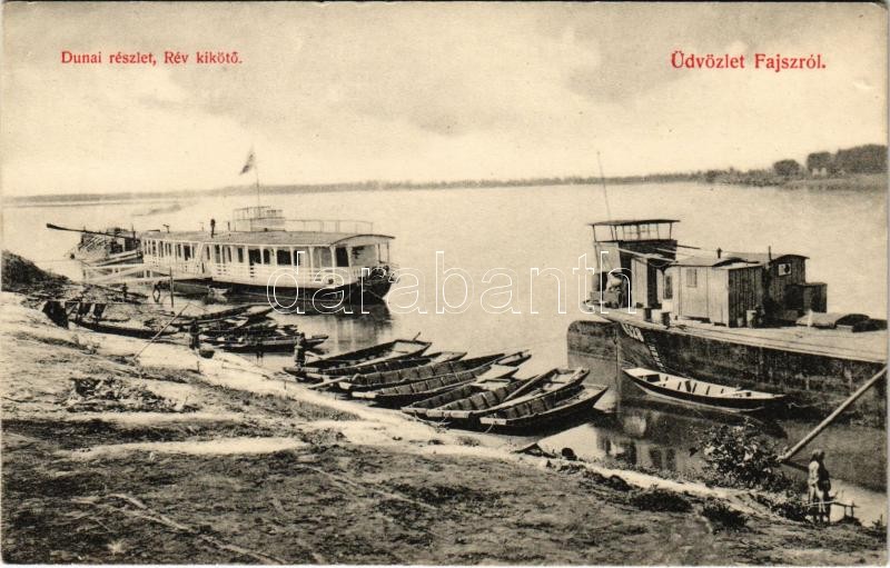 Beschreibung: Fajsz, Dunai részlet, RÉV kikötő, hajók és csónakok. Somogyi Lajos kiadása (Rb)