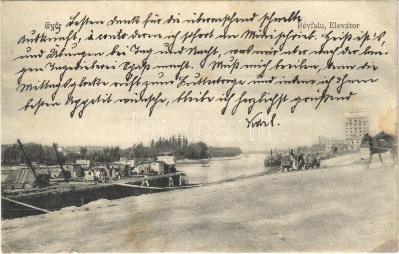 Győr, Révfalu, elevátor, uszály, lovaskocsik. Milanes Iván kiadása (EK... https://www.darabanth.com/de/36-Gross-Auktion/36.1/Ansichtskarten/Ungarn~15417/Gyor-Revfalu-elevator-uszaly-lovaskocsik-Milanes-Ivan-kiadasa-EK~II2478826