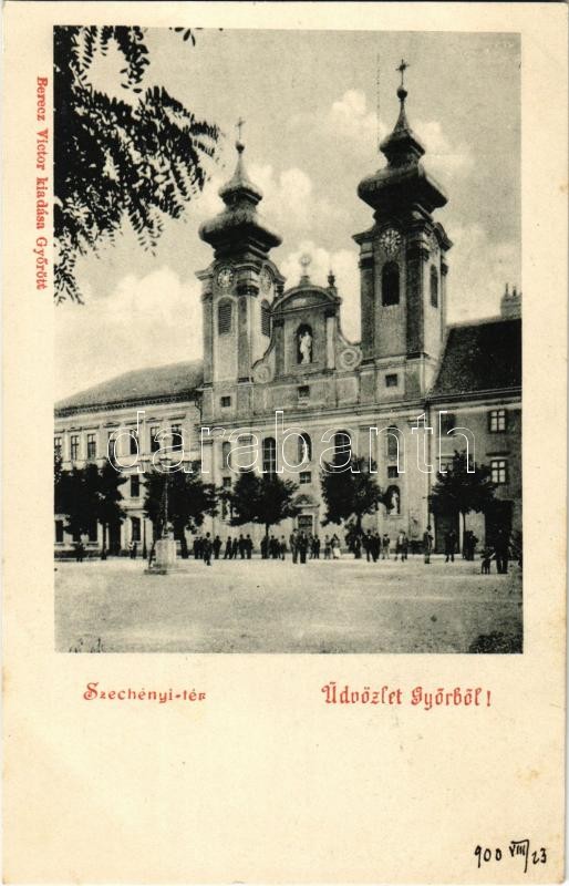 Győr, Széchenyi tér, templom. Berecz Viktor kiadása https://www.darabanth.com/de/36-Gross-Auktion/36.1/Ansichtskarten/Ungarn~15417/Gyor-Szechenyi-ter-templom-Berecz-Viktor-kiadasa~II2469711