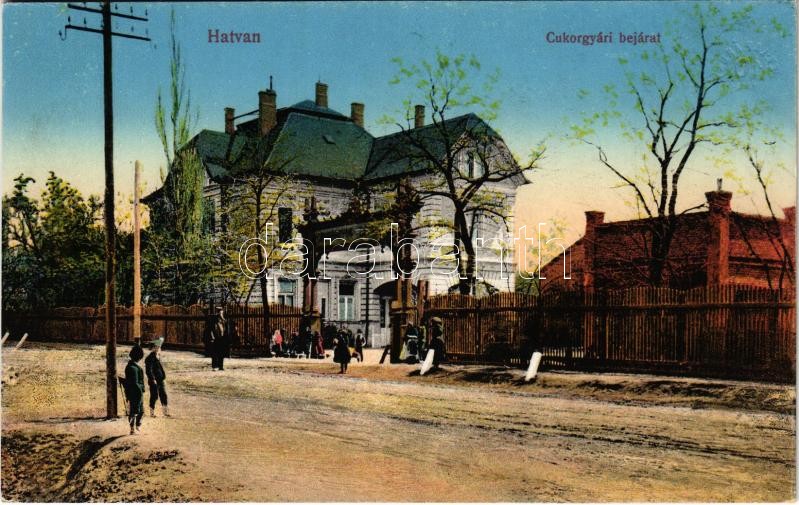 Hatvan, Cukorgyár bejárata. Vasúti levelezőlapárusítás 15. 1915 https://www.darabanth.com/de/36-Gross-Auktion/36.1/Ansichtskarten/Ungarn~15417/Hatvan-Cukorgyar-bejarata-Vasuti-levelezolaparusitas-15-1915~II2469288