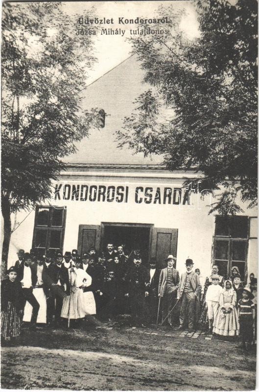 Beschreibung: Kondoros, Csárda, Józsa Mihály tulajdonos. Kupecz Vilmos kiadása (vágott / cut)