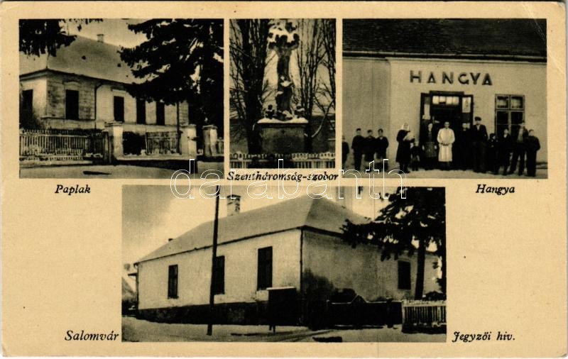 Salomvár (Zala), paplak, jegyzői hivatal, Szentháromság szobor télen, ... https://www.darabanth.com/de/36-Gross-Auktion/36.1/Ansichtskarten/Ungarn~15417/Salomvar-Zala-paplak-jegyzoi-hivatal-Szentharomsag-szobor-telen-Hangya-uzlete-es-sajat~II2489973