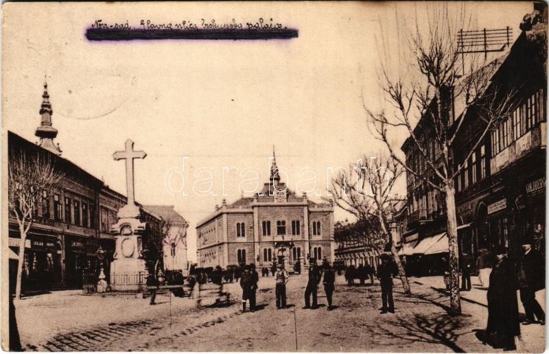 1919 Újvidék, Novi Sad; Fő utca, Püspöki palota, Goldberg üzlete. Vsúti levelezőlapárusítás 9895. / Glavna ulica, Biskupska palais / main street, bishop's palace, shops (Rb)