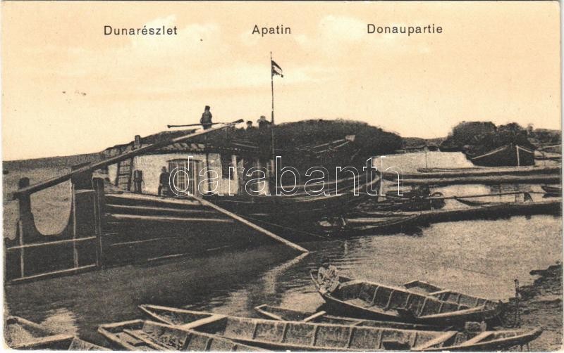 1921 Apatin, Duna részlet, csónakok / Donaupartie / Danube, boats (r) https://www.darabanth.com/de/36-Gross-Auktion/36.1/Ansichtskarten/Vojvodina~15426/1921-Apatin-Duna-reszlet-csonakok-Donaupartie-Danube-boats-r~II2446808