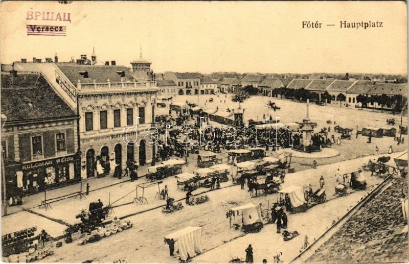 1926 Versec, Vrsac; Fő tér, piac, Koloman Weiss, Maria Uroschevits, Wa... https://www.darabanth.com/de/36-Gross-Auktion/36.1/Ansichtskarten/Vojvodina~15426/1926-Versec-Vrsac-Fo-ter-piac-Koloman-Weiss-Maria-Uroschevits-Wasa-Petrovits-uzlete-Gabor~II2469549