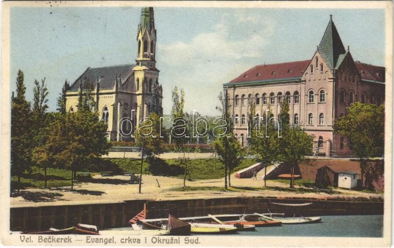 Beschreibung: 1928 Nagybecskerek, Zrenjanin, Veliki Beckerek; Evangélikus templom és törvényszék / crkva i okruzni sud / church and district court