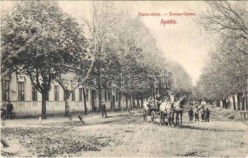 Apatin, Duna utca, lovaskocsi. Gasz Mátyás kiadása / street, horse cha... https://www.darabanth.com/de/36-Gross-Auktion/36.1/Ansichtskarten/Vojvodina~15426/Apatin-Duna-utca-lovaskocsi-Gasz-Matyas-kiadasa-street-horse-chariot-EK~II2438103