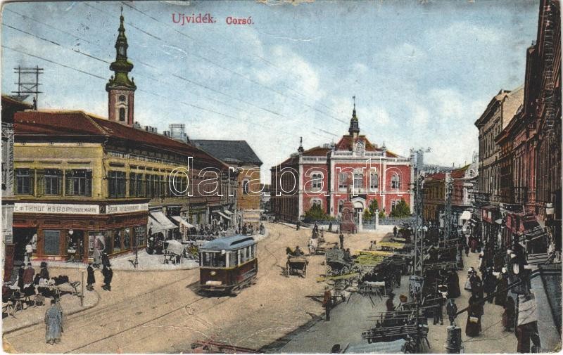 Újvidék, Novi Sad; Corsó, villamos, piac, Szerb takarékpénztár, Bazár ... https://www.darabanth.com/de/36-Gross-Auktion/36.1/Ansichtskarten/Vojvodina~15426/Ujvidek-Novi-Sad-Corso-villamos-piac-Szerb-takarekpenztar-Bazar-az-Olcso-Forrashoz-~II2476419
