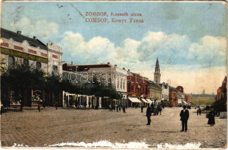 Zombor, Sombor; Kossuth utca, Ráczits és Czurkusits üzlete. Karakásevi... https://www.darabanth.com/de/36-Gross-Auktion/36.1/Ansichtskarten/Vojvodina~15426/Zombor-Sombor-Kossuth-utca-Raczits-es-Czurkusits-uzlete-Karakasevits-Mil-kiadasa-street-~II2470724