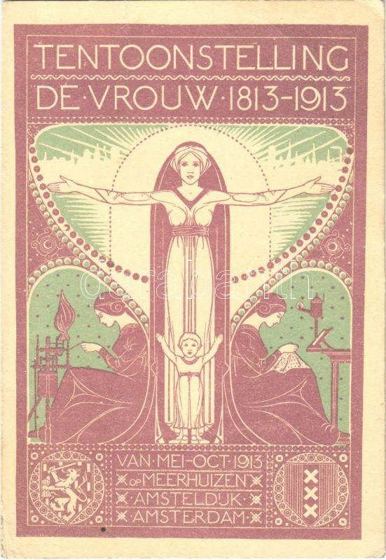 1913 Tentoonstelling de Vrouw 1813-1913 op Meerhuizen Amsteldijk Amsterdam / The Woman - Exhibition celebrating the 100th anniversary of liberation of the Netherlands from French occupiers in 1813. It highlighted the achievements of women through the century following liberation. Art Nouveau