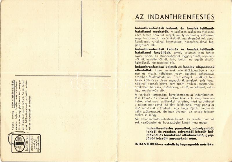 Indanthren textil festék reklámlap. Kinyitható / Indanthren textile pa... https://www.darabanth.com/de/36-Gross-Auktion/36.1/Ansichtskarten/Werbungen~15503/Indanthren-textil-festek-reklamlap-Kinyithato-Indanthren-textile-paint-advertisement-folding~II2486119