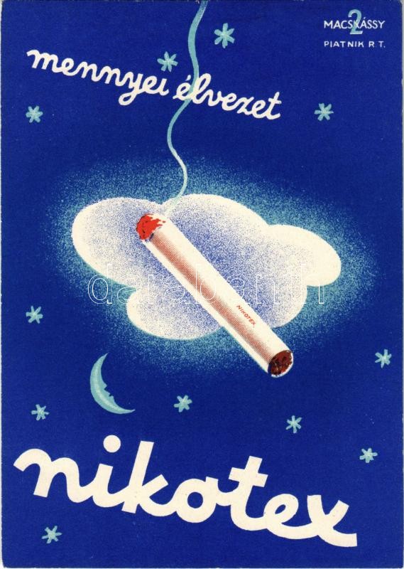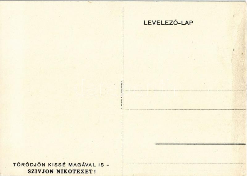 Mennyei élvezet: Nikotex. Törődjön kissé magával is - szívjon Nikotexe... https://www.darabanth.com/de/36-Gross-Auktion/36.1/Ansichtskarten/Werbungen~15503/Mennyei-elvezet-Nikotex-Torodjon-kisse-magaval-is-szivjon-Nikotexet-Piatnik-Rt-kiadasa~II2486457