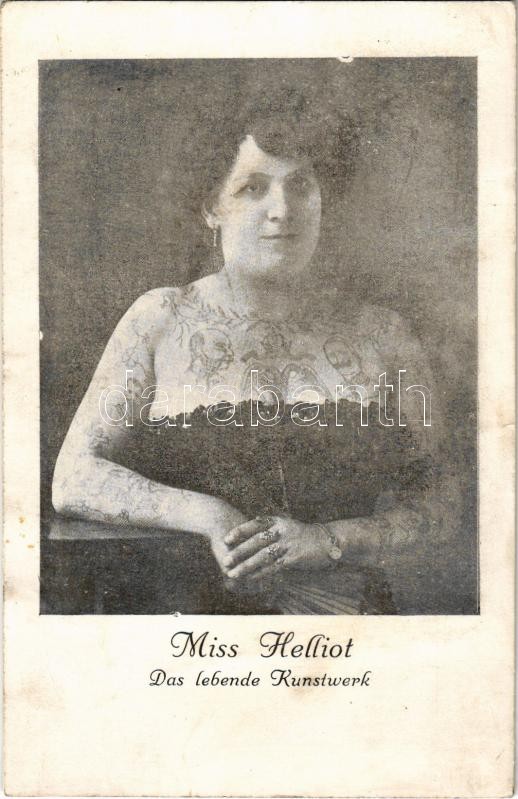 Miss Helliot Das lebende Kunstwerk / Tetovált hölgy "Az élő műalk... https://www.darabanth.com/de/36-Gross-Auktion/36.1/Ansichtskarten/Zirkus~15482/Miss-Helliot-Das-lebende-Kunstwerk-Tetovalt-holgy-Az-elo-mualkotas-Tattoed-lady-circus-~II2485965