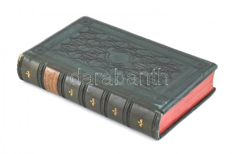 Alfred Tennyson (1809-1892): The Princess: A Medley. Twelfth edition.; In memoriam. Sixteenth edition. [Egy kötetben.] London, 1864-1865., Edwards Moxon, (London, Bradbury and Evans-ny.), 8+183; VII+1+211 p. Angol nyelven. Korabeli álbordás, aranyozott gerincű, dombornyomásos egészbőr-kötésben, a gerincen barna címkével, rajta aranyozott címfelirattal, festett lapélekkel, a borítón egészen kis kopásnyomokkal, korához képest szép állapotban. Ex libiris-szel: "Rickards of Old Radnor" feliratú, címeres ex libris, rézmetszet, papír, jelzés nélkül, 12x8 cm/ Alfred Tennyson (1809-1892): The Princess: A Medley. Twelfth edition.; In memoriam. Sixteenth edition. [In one volume.] London, 1864-1865., Edwards Moxon, (London, Bradbury and Evans-ny.), 8+183; VII+1+211 p. In Englisch langage. Full leather-binding, with gilt spine, and coloured fore-edges, with a little traces of wear, in good condition. With ex libris: Ex libris of "Rickards of Old Radnor", with coat of arms, copper engraving, paper, without sign, 12x8 cm