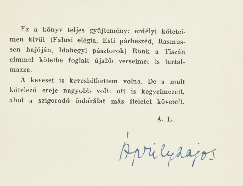 Áprily Lajos: Az aranymosó balladája. A szerző által aláírt példány. Kecskemét, 1934., (Első Kecskeméti Hírlapkiadó- és Nyomda Rt.), 298+1 p. Első kiadás. Kiadói félvászon-kötés, kissé kopott borítóval, a gerincen apró sérülésnyommal.