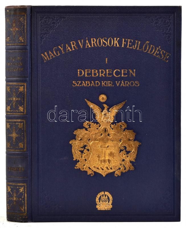Debrecen Sz. Kir. Város. A város multja, jelene és jövője rövid áttekintésben. Főszerk.: Csobán Endre, Csűrös Ferenc. Magyar városok fejlődése. Magyarország városai és vármegyéi. I. Szerk.: Kiszely Gyula. [Unicus! Több kötete a sorozatnak nem jelent meg.] Bp., 1931., Vármegyei Könyvkiadó,(Merkantil-ny.),457+3 p. Fekete-fehér képanyaggal illusztrált. Kiadói aranyozott, dombornyomott egészvászon-kötés, az elülső kötéstáblán Debrecen címerével, a borítón kopásnyomokkal, de alapvetően jó állapotban.