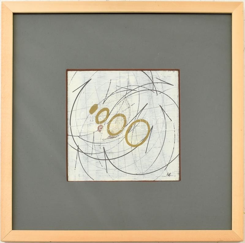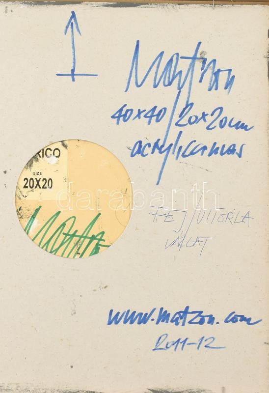 Matzon Ákos (1945-): Fej, vitorla, vázlat, 2011-12. Akril, olaj, vászon, kartonon, jelzett. Hátoldalán is jelzett és datált, valamint a művész autográf feliratával. Üvegezett fa keretben. 20x20 cm/ Acrylic and oil on canvas, mounted on board, signed and dated on the back. With the artist's autograph description on the reverse. Framed with glass. 20x20 cm