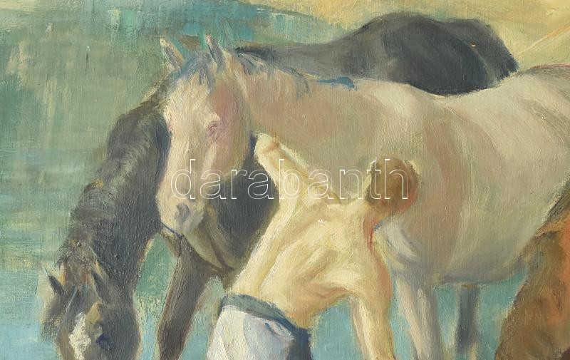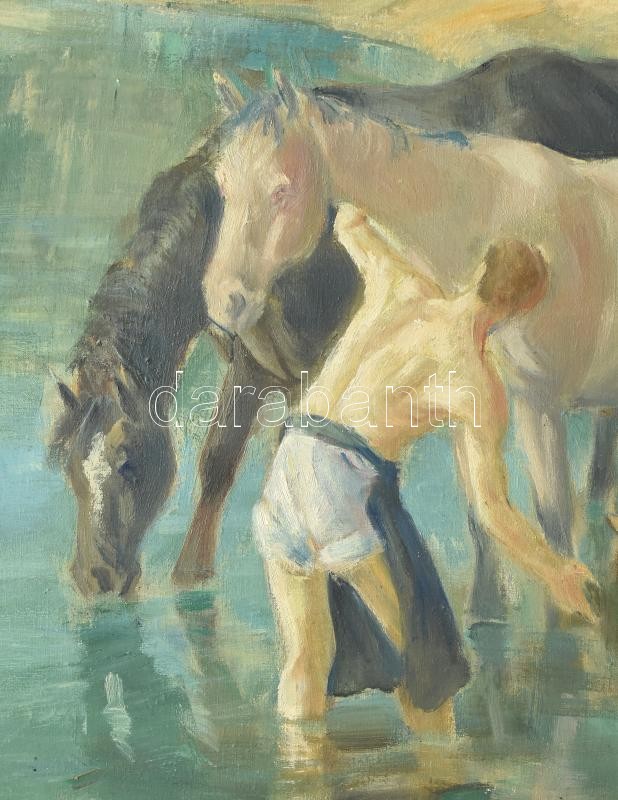 Udvary Pál (1900-1987): Itatás (Balatonpart?). Olaj, vászon. Jelezve b... https://www.darabanth.com/de/36-Gross-Auktion/36.1/Gemalde-und-Grafiken/Gemalde-und-Grafiken~15518/Udvary-Pal-1900-1987-Itatas-Balatonpart-Olaj-vaszon-Jelezve-balra-lent-Hatoldalan-Ke~II2489214