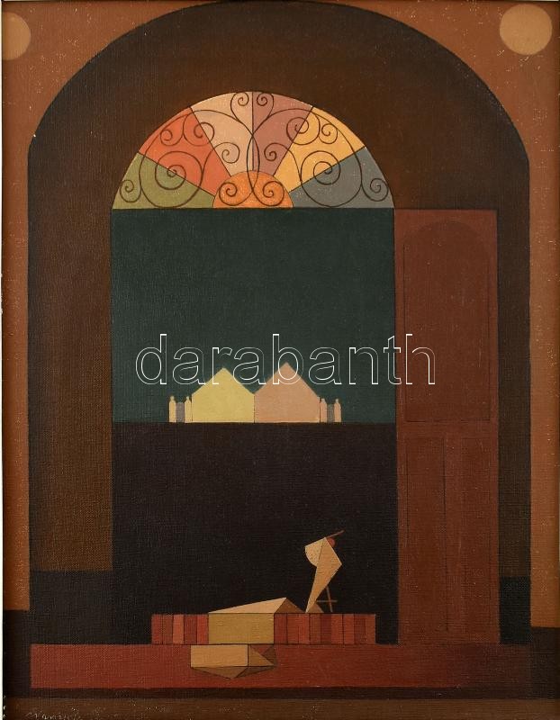 Wanyek Tivadar (1910-1981): Ikrek. Olaj, vászon. Jelzett. Hátoldalán autográf felirattal. Fa keretben. 45x35 cm / Tivadar Vanjek (1910-1981): Twins. Oil on canvas. Jelzett. With autograph description on the reverse. Framed. 45x35 cm