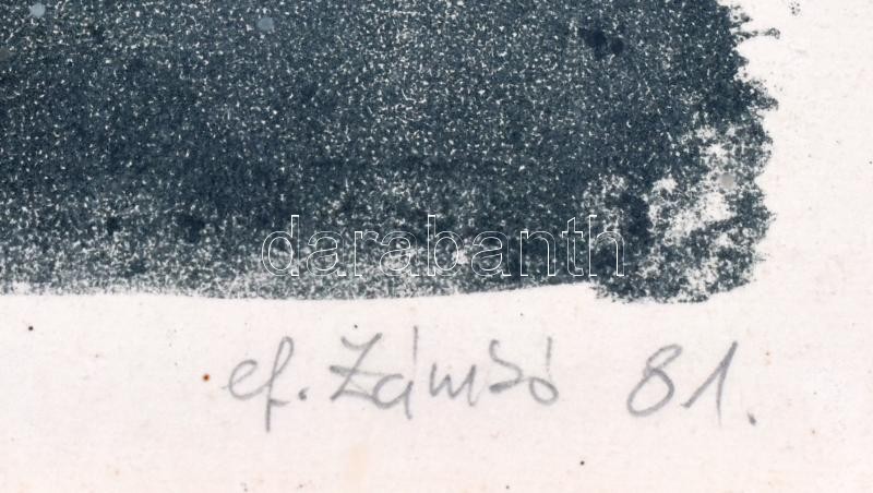 ef Zámbó István (1950-): A macska éjféltől párhuzamos (1981/83). Litográfia, színes ceruza, papír. Jelzett. Számozott 1/15. Lap alján "egyediesítve 83. okt 12" felirattal. Hátoldalán művészről készült lexikon bejegyzéssel. 33,5x24 cm. Üvegezett fa keretben. Egyedi gyűjtői darab!