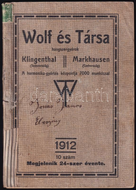1912 Wolf és Társa hangszergyár képekkel illusztrált katalógusa, árjeg... https://www.darabanth.com/de/36-Gross-Auktion/36.1/Kunst-Dokumente-andere-Sammelgebiete/Drucksachen~15522/1912-Wolf-es-Tarsa-hangszergyar-kepekkel-illusztralt-katalogusa-arjegyzeke-106-p-serul~II2489225
