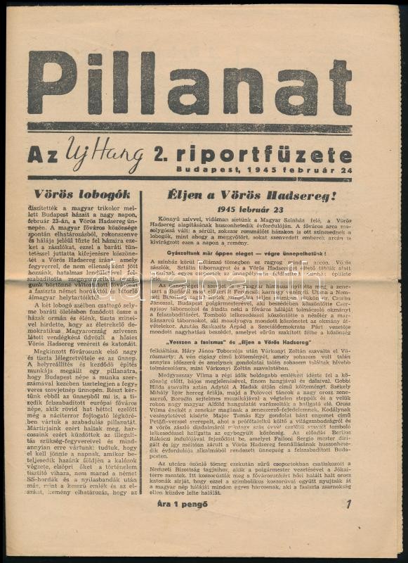 1945 Pillanat, Az Új hang 2. riportfüzete a frissen felszabadított Bud... https://www.darabanth.com/de/36-Gross-Auktion/36.1/Kunst-Dokumente-andere-Sammelgebiete/Drucksachen~15522/1945-Pillanat-Az-Uj-hang-2-riportfuzete-a-frissen-felszabaditott-Budapesten-8p~II2487870