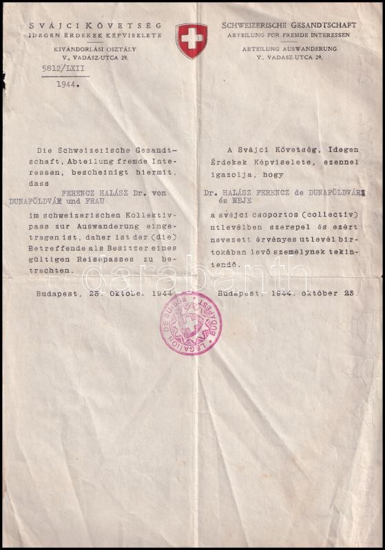 1944 A svájci követség menlevele Schutzpass magyar férfi részére. / Sw... https://www.darabanth.com/de/36-Gross-Auktion/36.1/Kunst-Dokumente-andere-Sammelgebiete/Judaica~15152/1944-A-svajci-kovetseg-menlevele-Schutzpass-magyar-ferfi-reszere-Swiss-Schutzpass-for-Hunga~II2488240