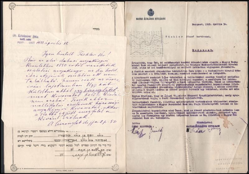 cca 1890-1948 a részben Bugyi községből származó Tüchler család irat é... https://www.darabanth.com/de/36-Gross-Auktion/36.1/Kunst-Dokumente-andere-Sammelgebiete/Judaica~15152/cca-1890-1948-a-reszben-Bugyi-kozsegbol-szarmazo-Tuchler-csalad-irat-es-level-hagyateka-~II2490670