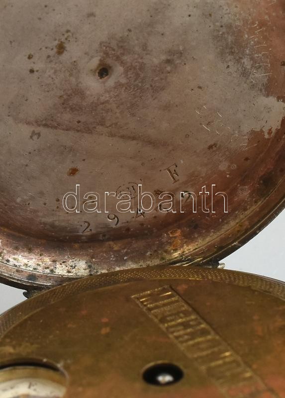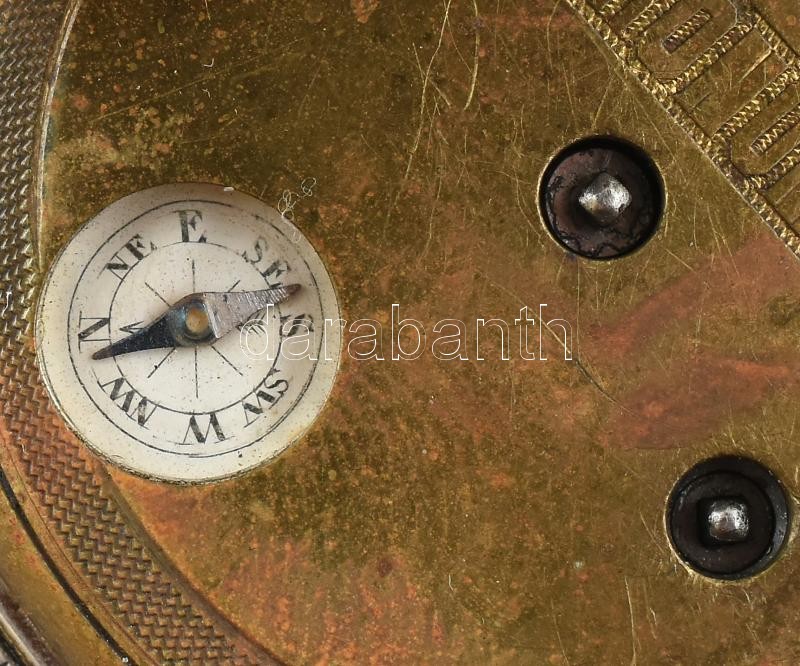 Antik Michronometre kulcsos zsebóra, különleges, városrészletet ábrázoló vésett híddal és kis iránytűvel. Hajós ezüst tokkal. Működő, jó állapotban, felhúzó kulccsal, számlapon hajszálrepedések d: 43 mm / Michronometre Antique Silver Pocket Watch with compass in carved town scene movement. Works well. Small cracks on dial