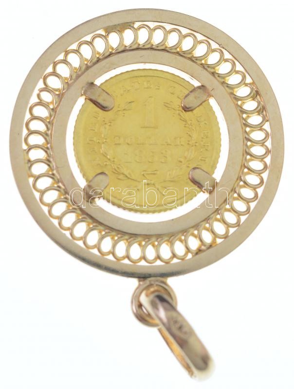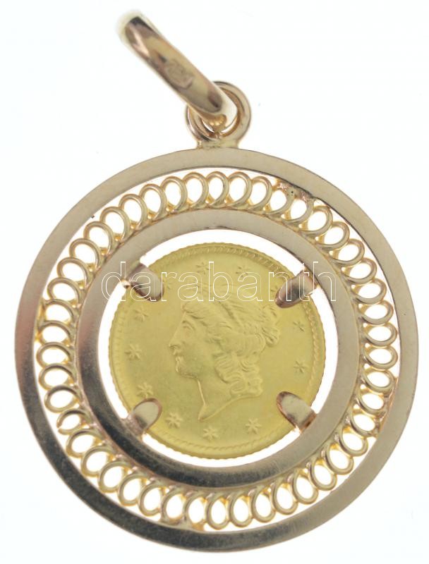 Amerikai Egyesült Államok 1853. 1$ Au "Liberty Head" Philadelphia, jelzett Au keretben (érme: 1,67g/0.900, keret 4,29g/0.750) T:2 / USA 1853. 1 Dollar Au "Liberty Head" Philadelphia (coin: 1,67g/0.900, frame: 4,29g/0.750) C:XF